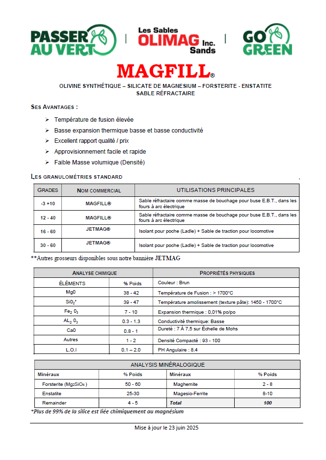 Les Sables Olimag Inc 2899, boul. Frontenac Est Thetford Mines (Québec) G6G 6P6 - Canada |